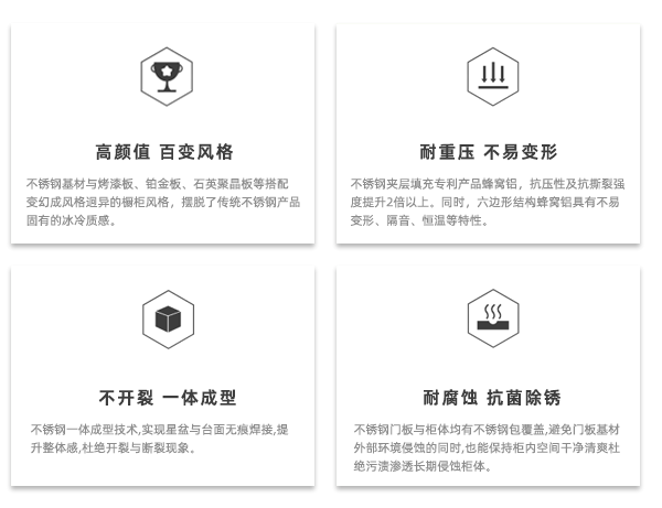 歡樂廚的產(chǎn)品堅持以綠色環(huán)保作為生產(chǎn)經(jīng)營的基本準則,從選材、生產(chǎn)流程到安裝每個環(huán)節(jié)都嚴格遵循綠色環(huán)保標準。我司的產(chǎn)品經(jīng)過了嚴格的質量檢測和認證,確保了產(chǎn)品的品質和安全性。